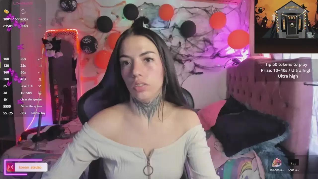 Meet KONAN_ATSUKO. This Female is playful and bold. At 23, her shape is perfect. She performs on Cam4. From Colombia, she loves to talk, is currently offline, muff gets passionate, uses vibrators,